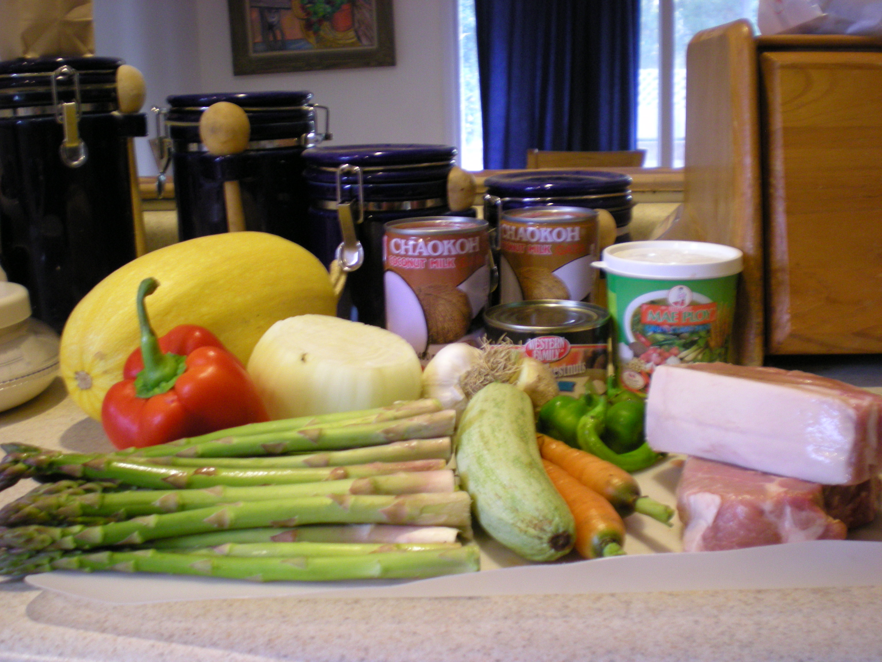 I decided to make a Thai Curry because I had plenty of cans of coconut milk in the pantry and a partial container of Mae Ploy Green Curry Paste in the fridge. This curry paste is from Thailand and adds a very authentic flavor to homemade curries.
