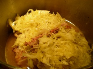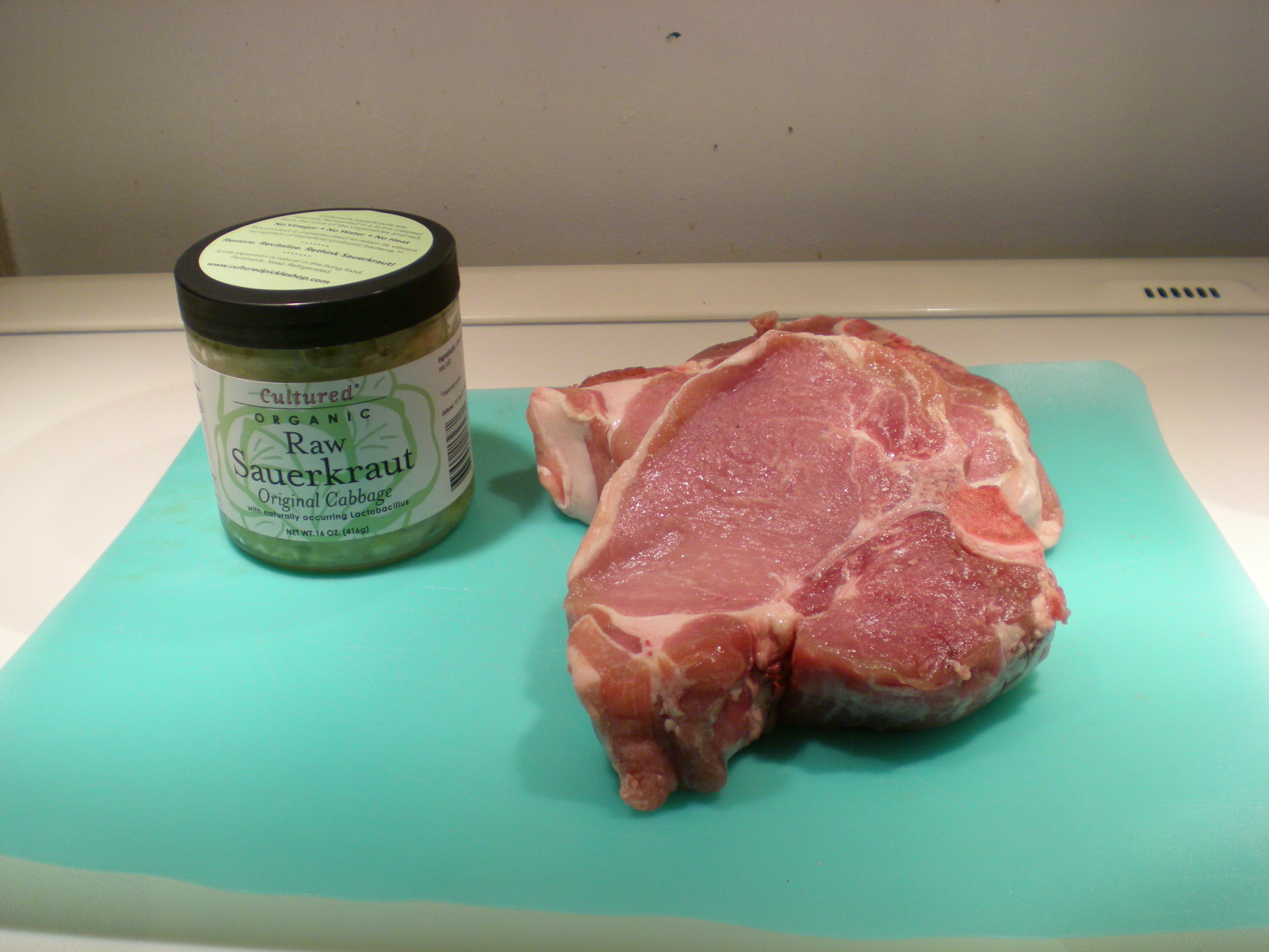 This concept was born in the kitchen at work. I was talking pressure cookers with a co-worker of mine (who happens to be German). She mentioned that one of her favorite pressure cooker recipes was Pork Chops with Sauerkraut. The pressure cooker reduces the Sauerkraut down to a tangy sauce.