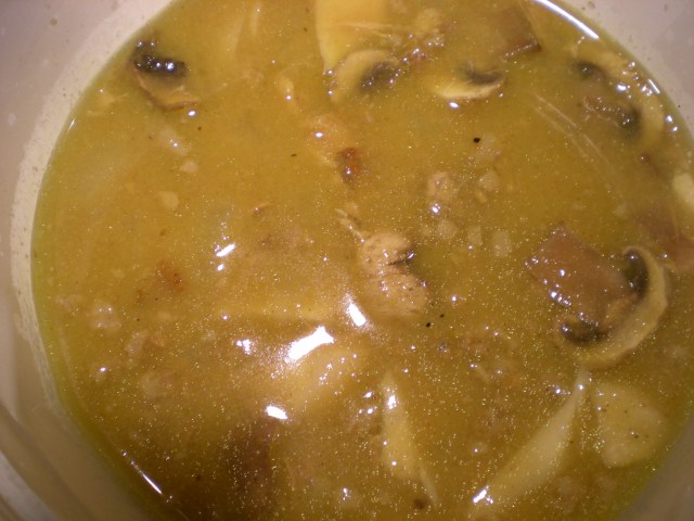 Dinner was a creation that I will call Harvest Medley Soup. I sautéed some onions and ½ pound of sausage I had leftover in a large soup pot. I added the broth I made from the turkey carcass along with the meat that came off the carcass. I brought that to a boil and added pumpkin puree (leftover from the puree I made for my pies), trumpet mushrooms and white mushrooms. I seasoned with 2 TBS Curry Powder, 1 TBS Cinnamon and a sprinkle of Cayenne Pepper. I let it simmer for about an hour and then stirred in 1 cup of coconut milk. I let it heat for 5 more minutes and then TMOTH and I fell on the food like ravenous beasts sat down to dinner.