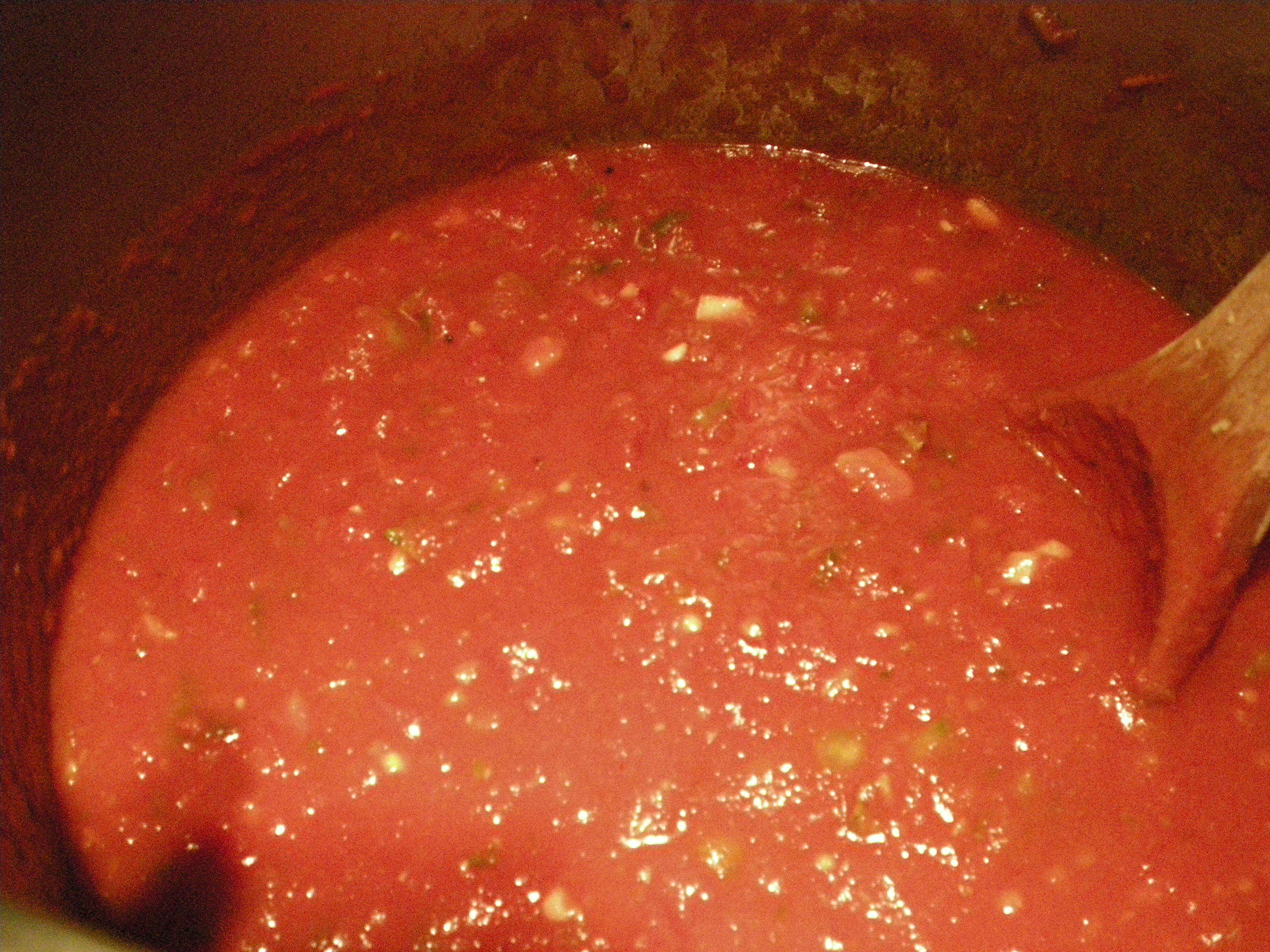 DSCN5313The sauce has tomatoes, olive oil, garlic, basil, green peppers, onion and oregano.