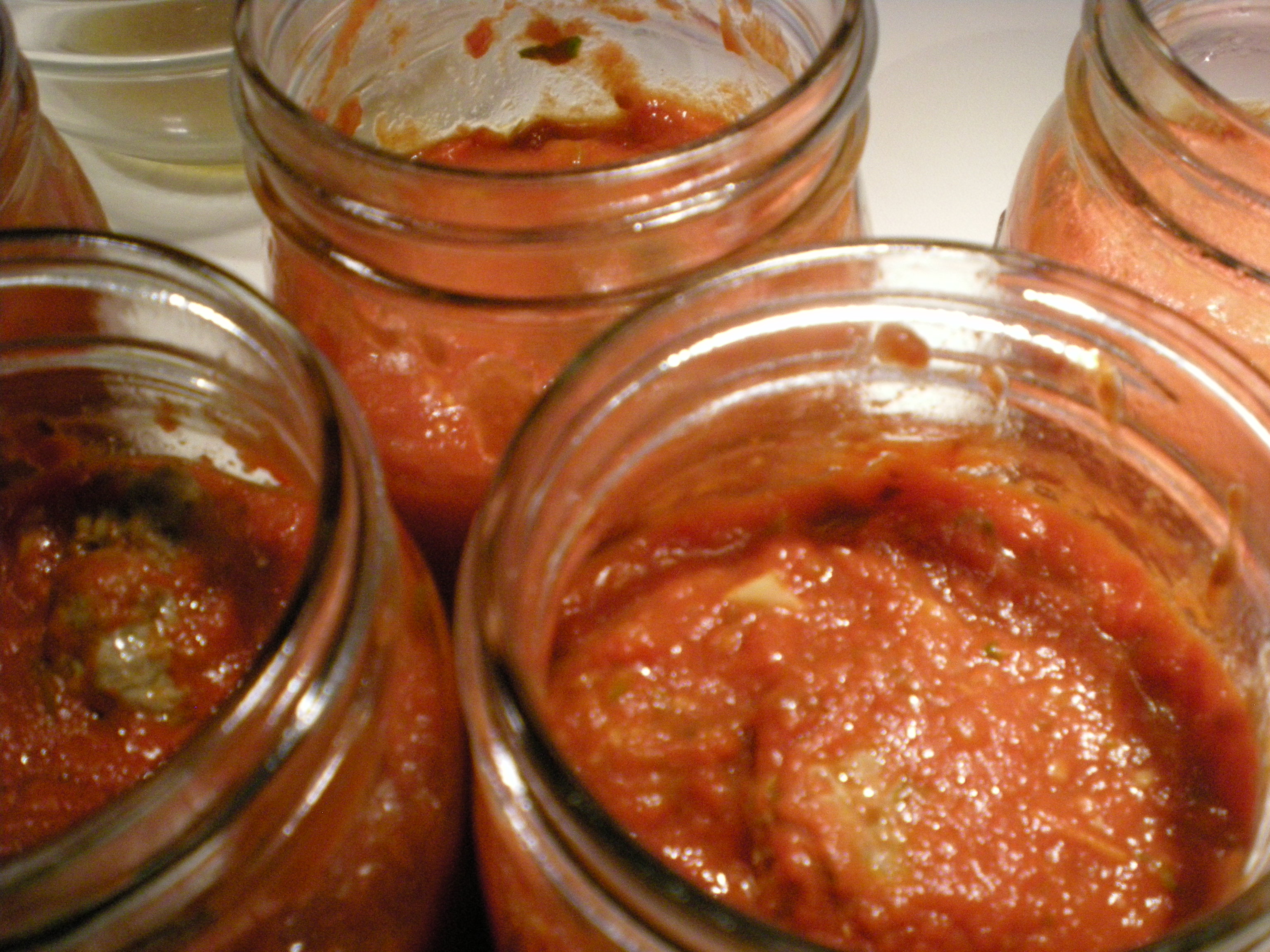 The five quarts are cooling on the counter.  All of them sealed.  I figure each jar will provide a dinner for TMOTH and I, plus enough leftovers for my lunch.  We’ll serve this on shredded Spaghetti Squash or Zucchini Noodles.